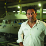 Portrait of CEO Mark Richards with his first new Grand Banks creation since taking the helm in 2014.