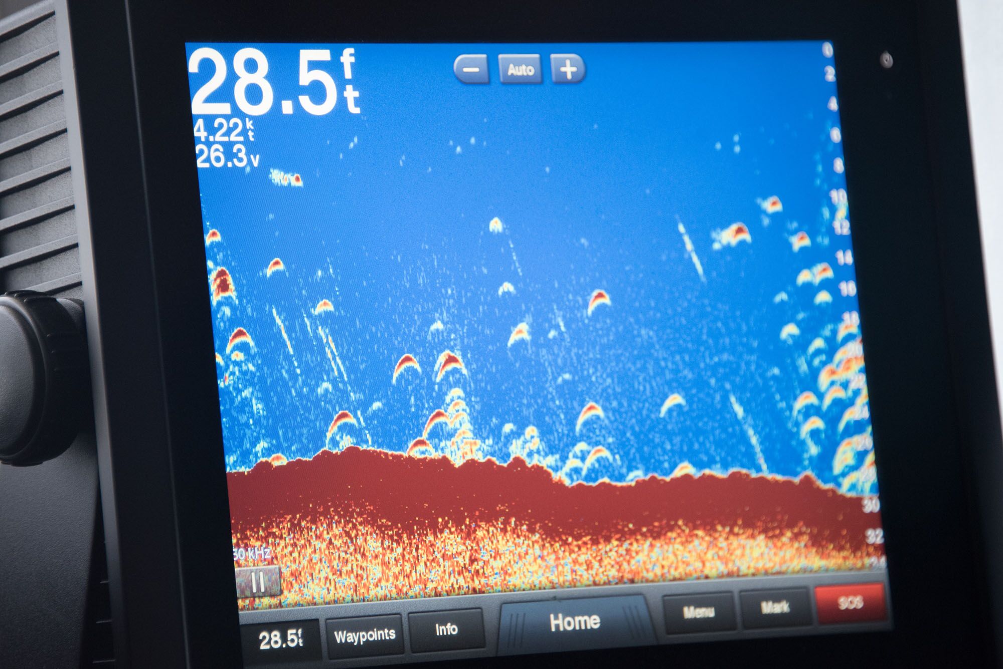The calm, clear weather continued the next morning, and I took advantage of it to install new equipment in the dinghy—a Garmin chartplotter. The most compelling feature of this device is its ability to record sonar data and use it to generate bottom contours, in essence, giving us the ability to make our own charts. These could then be shared with Explorer’s onboard plotters, making sure the ensuing anchoring operations would be both less speculative and more relaxed.