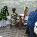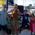The trick with an old boat is to stay calm and methodically troubleshoot until the problem resolves. Every seasoned boater has a story about this process, which sometimes lasts well into the night. While Mark did troubleshooting with Ed on the phone, I led the tsunamis out to the bow with snacks and books, and read aloud to them to quell my own anxiety and fear. We were on an anchor with a starter that wouldn’t shut off, and with smoke and a burning smell rising from the engine room. Welcome to day two of our vacation.
