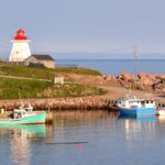 Despite this reach into the higher latitudes, the loop is quite manageable. All you need is a sound vessel with a reliable engine that can do at least 6 knots so you can complete the cruise in a single summer. Extended daylight allows after-supper sightseeing at the higher latitudes, and while you will experience chillier waters (around 45 degrees Fahrenheit) and lower air temperatures (55 to 65 degrees) at the northern end of the loop, it won’t stay cold for long. After rounding the Gaspé Peninsula (pictured at top), the route passes into Northumberland Strait, which actually boasts the warmest saltwater north of Virginia (averaging 73 degrees). The sandy shores of New Brunswick, Prince Edward Island and Nova Scotia along the strait are the delight of beachgoers, and the red bluffs and rolling hills provide just the right environment for Nova Scotia’s burgeoning wine industry.