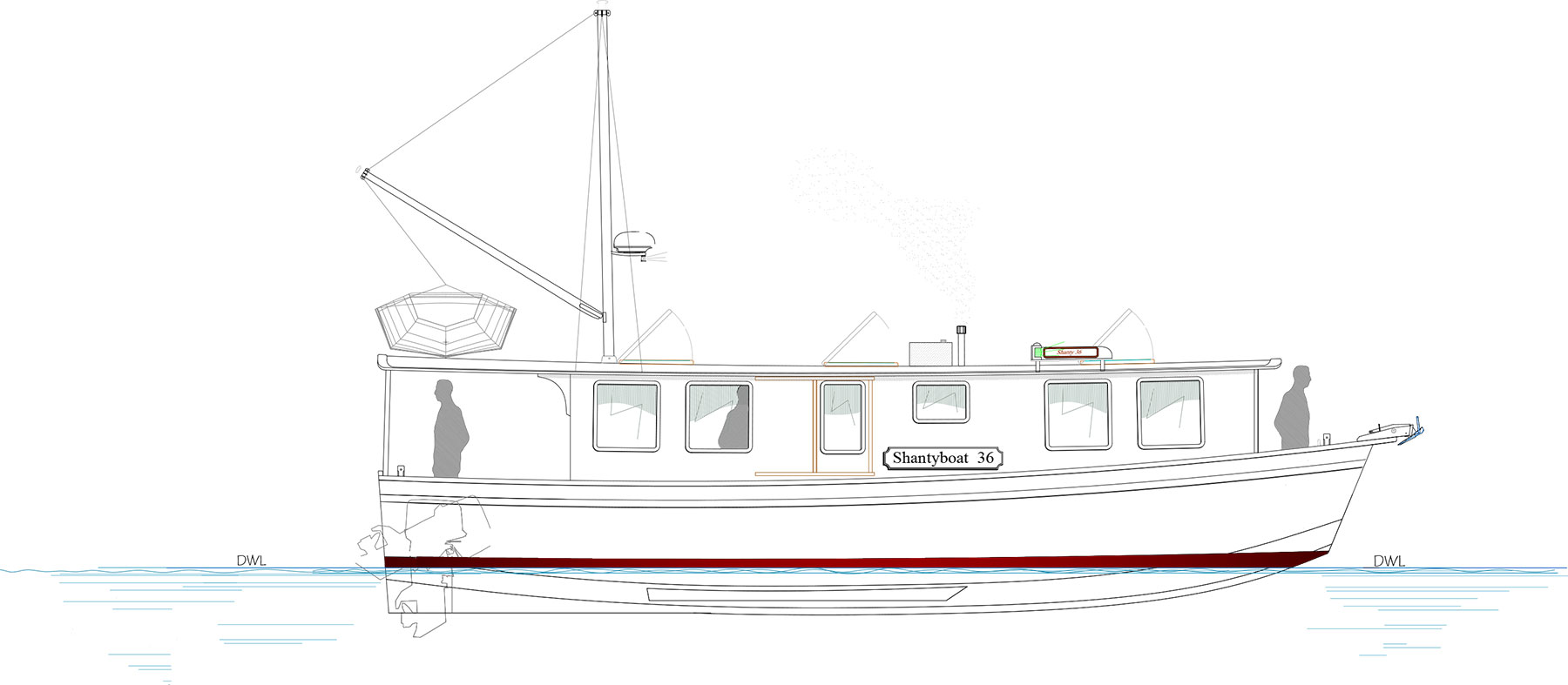 With a shallow draft, protected keel and efficient outboard power, the Shanty 36 begs you to find your gunkhole.