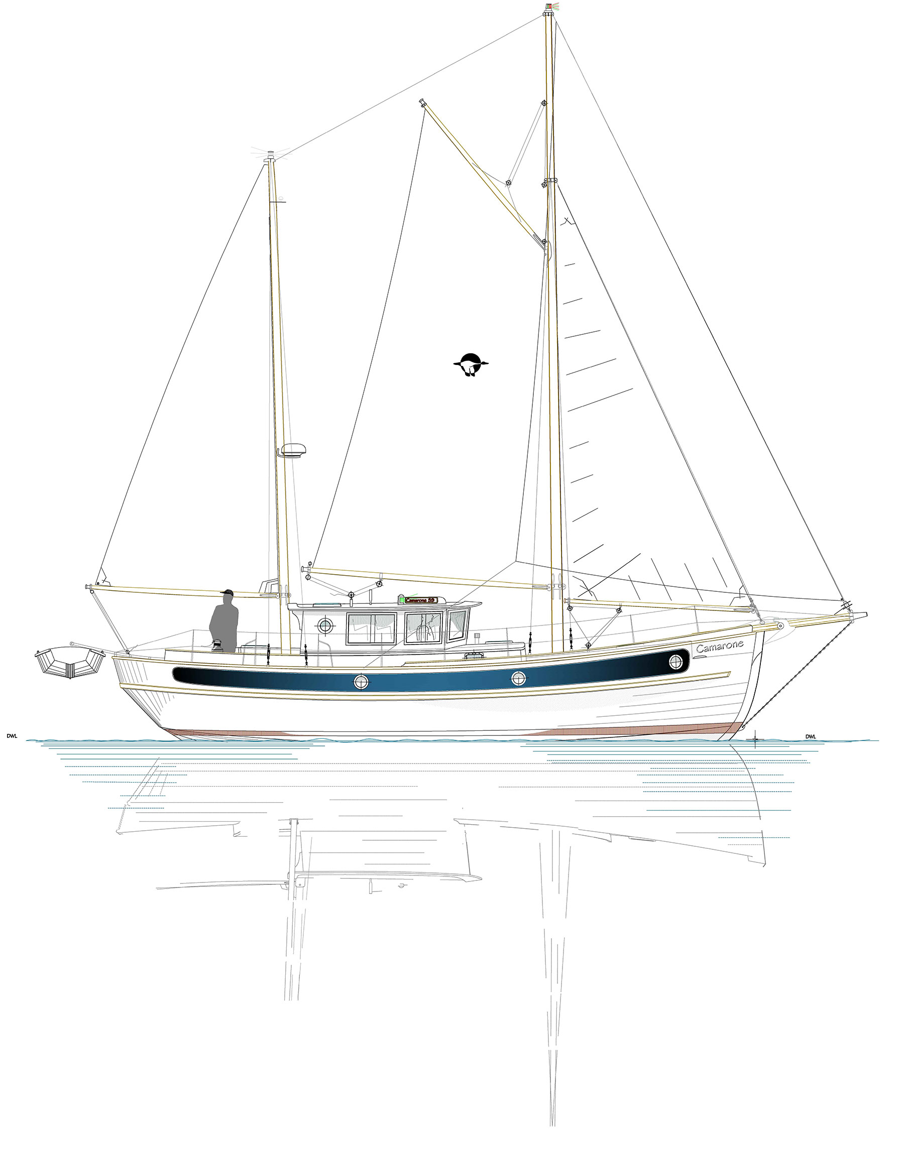 The Camarone 40 can be designed as a pure powerboat, but she shines as a motorsailer.