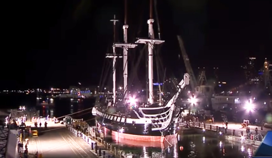 After a Two-Year Refit, She’s Towed Out of Her Boston Drydock