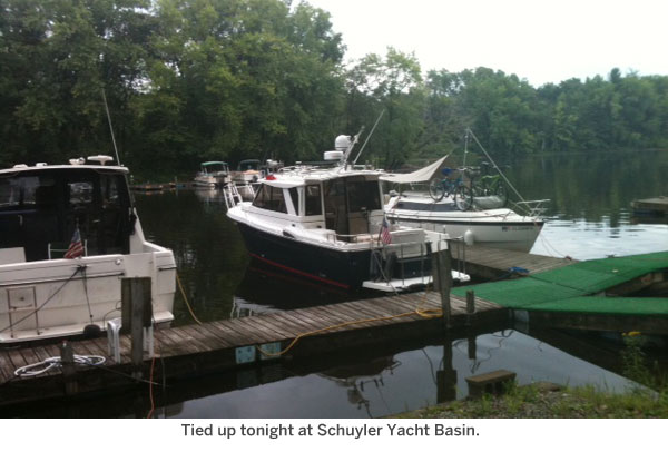 We’re finally underway on the first leg of our epic Downeast Loop on a new Cutwater 28. Right now we’re in Kingston NY, some 80 nm from where we started at Liberty Landing Marina across the Hudson from downtown Manhattan this morning.