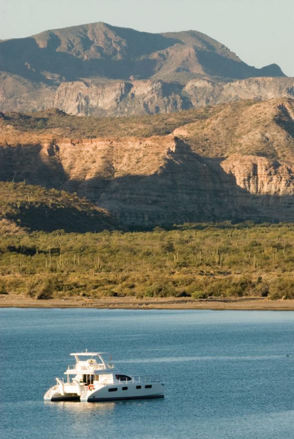 Given their over-familiarity with Western topography, I doubt our cruising brethren from California—though they love Baja—can experience the region as intensely as we East Coast boaters. And in our particular case, we were doing so from the flying bridge of a Moorings 47 Power Cat, a futuristic vessel with a commanding view of the lunar-like sea of tranquility that lay before us.