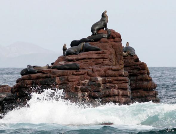 To make the round trip in our allotted number of days, I determined that day one would be our longest passage, about 85 nautical miles. With conditions of total calm, and a boat that cruised happily at 10 knots, this was pure pleasure. With plenty of daylight, we had time for little detours. First we nosed the big cat up to Los Islotes, rock outcroppings where boatloads of tourists come to swim with sea lions.