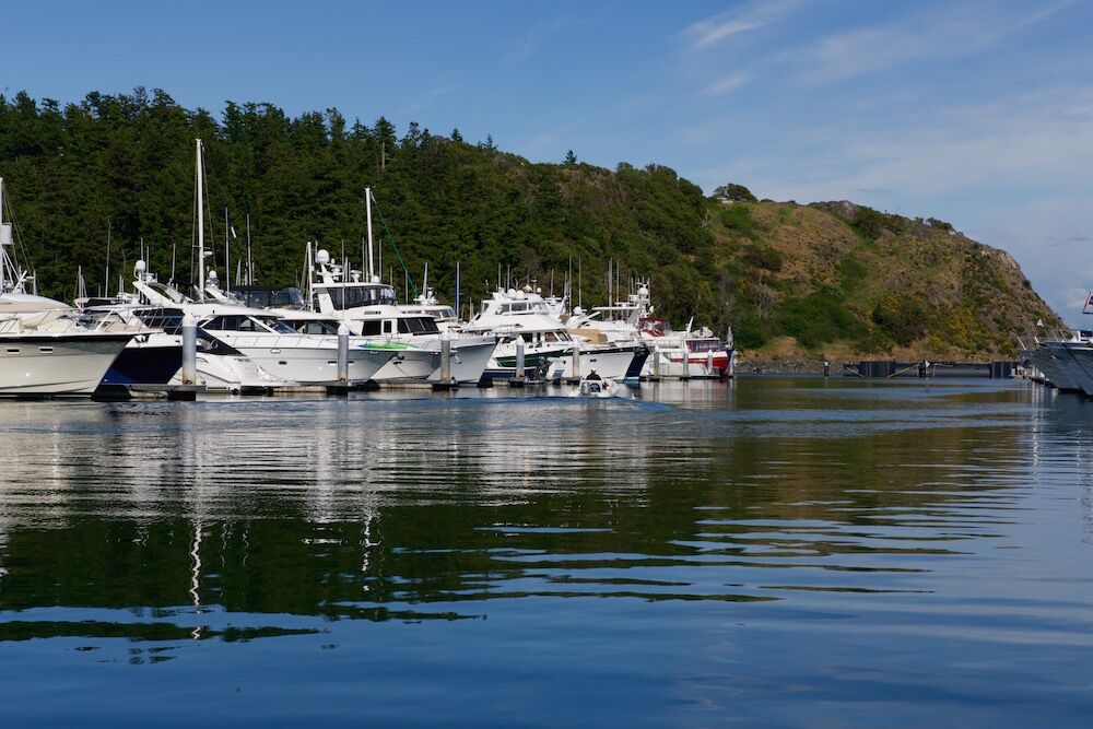 Before I had the last line off, Betty was halfway out of her slip. And by the time I’d climbed the ladder to the flying bridge she was midfairway, rapidly bearing down on an array of bow pulpits downwind.