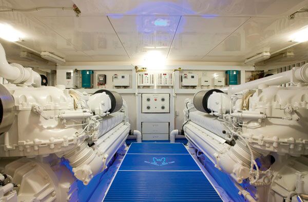 And speaking of that walkway between the engines, I’d like to take this opportunity to vent a personal frustration. Everyone loves the shiny diamondplate panels that typically cover this walkway. They really add a classy touch to a finely fit engine room.