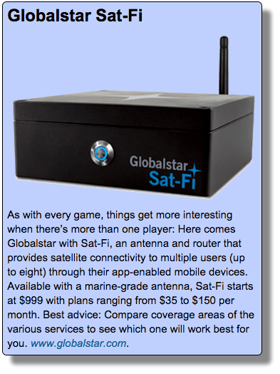 Iridium GO is designed to allow connectivity with a smartphone or tablet through an app installed on the device. It can be powered by wire but also has an internal battery that offers 18 hours of standby time or four hours of talk time. If it works, this could be a terrific product for people who cruise the Bahamas or anywhere outside the coastal limits of the United States—depending on the price.