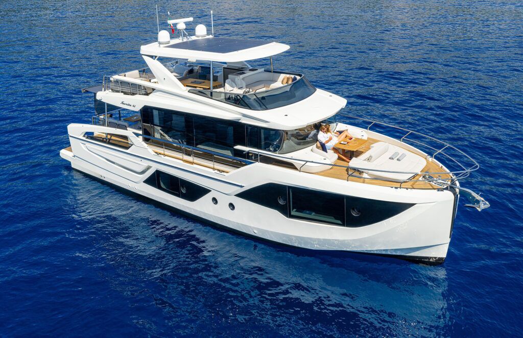 I think of these print ads during my tours aboard the boats from Absolute Yachts. The Italy-based builder seemingly came out of nowhere in the early 2010s to take on a packed segment, adding its own line of sleek flybridge models. Buyers noticed and Absolute’s presence grew, with larger displays at successive boat shows. The builder’s semi-displacement Navettas are “little ships” that now number 10 models from 48 to 70 feet length overall.