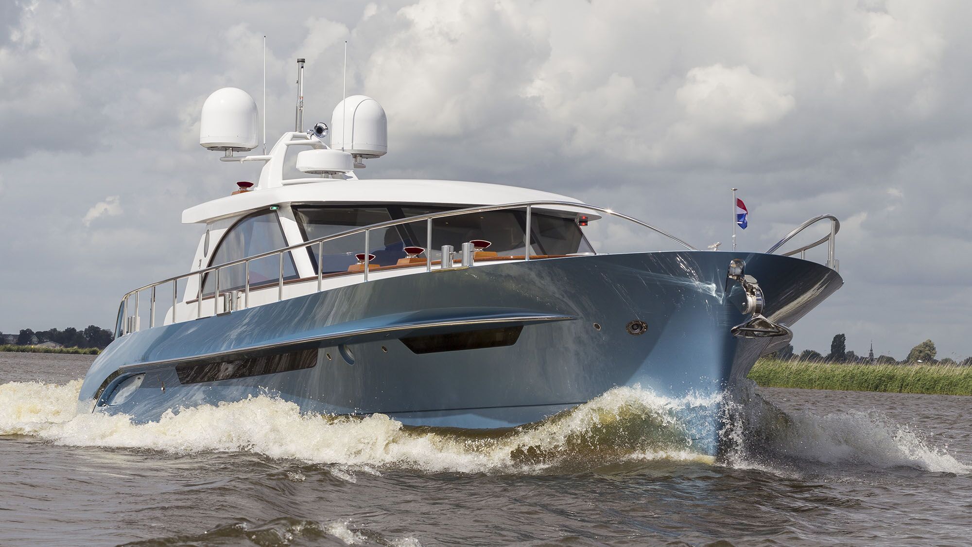 Like many of these Dutch yards, Steeler is going modern with new ranges of yachts that embrace advanced styling. Their Panorama and Bronson ranges use aluminum to give higher planing speeds, and the styling is aimed more at the Mediterranean market where boating in the sun is the norm.