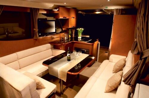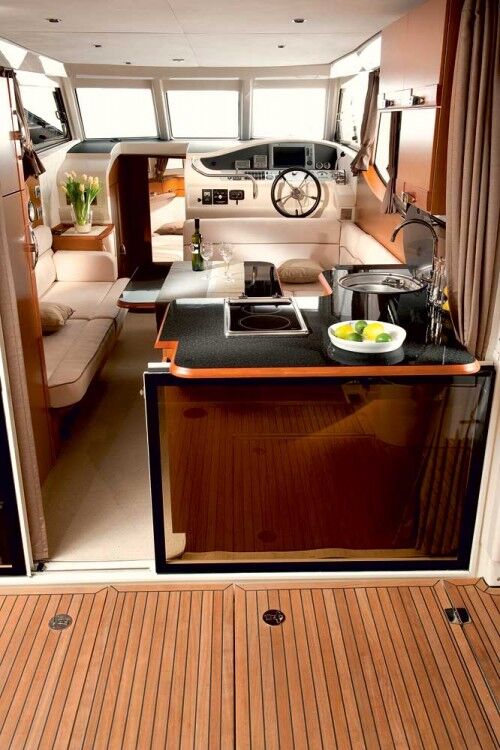 The transom lowers electrically to lie flat, enlarging the cockpit even more, ideal when at anchor and the crew wants to swim or simply enjoy the surroundings. The boat’s openness is also enhanced by large saloon windows, some of which slide open.