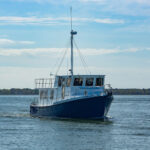 John’s introduction to Bruce Atkinson happened during their three-hour drive from the airport in Halifax to Cape Sable Island. With degrees in both physics and physiology, John is Principal Emeritus at the Royal Military College of Canada (RMC) in Kingston, Ontario. Yet in the car with Bruce on their way to the yard, it was John receiving a lesson in physics and hydrodynamics from the boat builder. While John knew from his research that Cape Island boats had a reputation for being very stable, he hadn’t thought much about why that was. Bruce explained that unlike typical cruising boats, which are either underway or anchored, a fishing boat working longlines or hauling lobster pots is frequently operating at very slow speeds or stopped in the water. In doing so, they don’t have the luxury of always keeping the boat pointed into the seas. Now, imagine crews on their feet moving around the boat handling what can be dangerous gear and you start to see the reason why Cape Island boats are designed and built to be so stable. Bruce also explained the stability needed to be inherent in the hull design as fishing vessels can’t have the underwater components of active stabilizers moving when they have lines in the water.