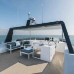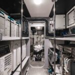 The main deck has a large kitchen, a dining area and the owner’s cabin. The wheelhouse has a comfortable lounge for guest enjoyment underway.