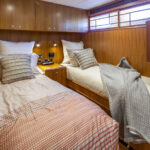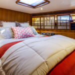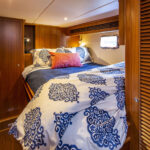 The owner also made a change in the VIP stateroom, which has a feature that makes it easier to get sheets and a bedspread off and on. An Outer Reef customization allows the berth to slide forward, giving better access to the mattress for housekeeping.