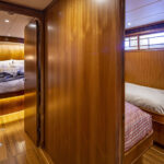 According to Kevin Blake, Northwest sales consultant and company captain, a high percentage of Outer Reef clients are owner-operators who view the crew quarters more as a fourth stateroom aft. This attitude is reflected in the fit and finish aboard Rhapsody, whose crew space rivals that of guest staterooms on larger yachts. With the owner’s long-range cruising aspirations, the space may also help attract a hired captain for legs of the journey.