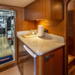 “We also consider resale during the build process,” Blake says. “In this instance, the owner opted to forgo the second washer/dryer unit in the aft area in favor of more storage, but Jeff [Druek, CEO of Outer Reef Yachts] knew the owner would want to sell the boat eventually and that having the space plumbed for a washer/dryer would be advantageous to the owner in terms of resale value, so they pre-plumbed the space.”
