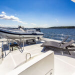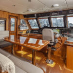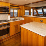 Creature comforts aside, the Classic Series is known for performance. Cruising aboard Rhapsody around 10 knots in Puget Sound, it was hard to tell we were in a 3-foot chop, whether broadside- or head-to, thanks in part to the owner’s decision to go with larger, 7½-foot ABT-Trac fin stabilizers. Rhapsody has extensive redundancy features, including an additional set of batteries for a second inverter, just to be safe. The owner also opted for a larger 2,350-gallon fuel tank because he wanted more range.