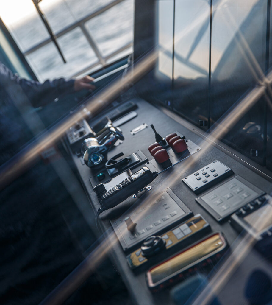 The owner’s experience also shows on deck, in several ways. A regular dousing with the seawater hose should be enough to keep things clean and tidy. This is a fairly tall yacht with a significant weight of glass in the superstructure: The windows are an inch thick, to cope with extreme conditions without deadlights.
