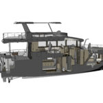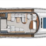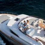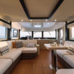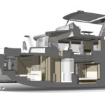 Not needing to house a tender and davit up top serves the flybridge well, allowing an outdoor entertainment space befitting a yacht 10 feet longer, complete with sunpad, built-in seating, a large dining table, space for a grill, and a full helm and navigation station (which, for me, would inevitably become the main control station).