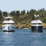 The engines are installed in a V-drive configuration, placing them farther aft where noise and vibration are more readily isolated and attenuated. Another smart choice on our test yacht was a Webasto V-series chiller-type HVAC system with “zero peak starting loads” thanks to cutting-edge inverter technology and variable speed refrigerant compressors. The systems are energy-efficient, eliminating the high peak starting loads (five to seven times greater than average running loads) demanded by traditional constant-speed compressor systems—the most important factor in generator sizing for a yacht.