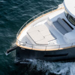 The 58 is built in Turkey at Sirena Marine’s ISO-certified, 1,600,000 square-foot facility. Concept, exterior styling, and hull design are by Argentinian naval architect Germán Frers, with interior design and styling by Italian designer Tommaso Spadolini. Frers’ team is well known for racing sail design. In my experience, those types truly grasp the principles of how to get the most from a hull’s underbody to achieve the evenly-distributed lift that characterizes semi-displacement form, holding virtually constant trim through stepped increases in speed.
