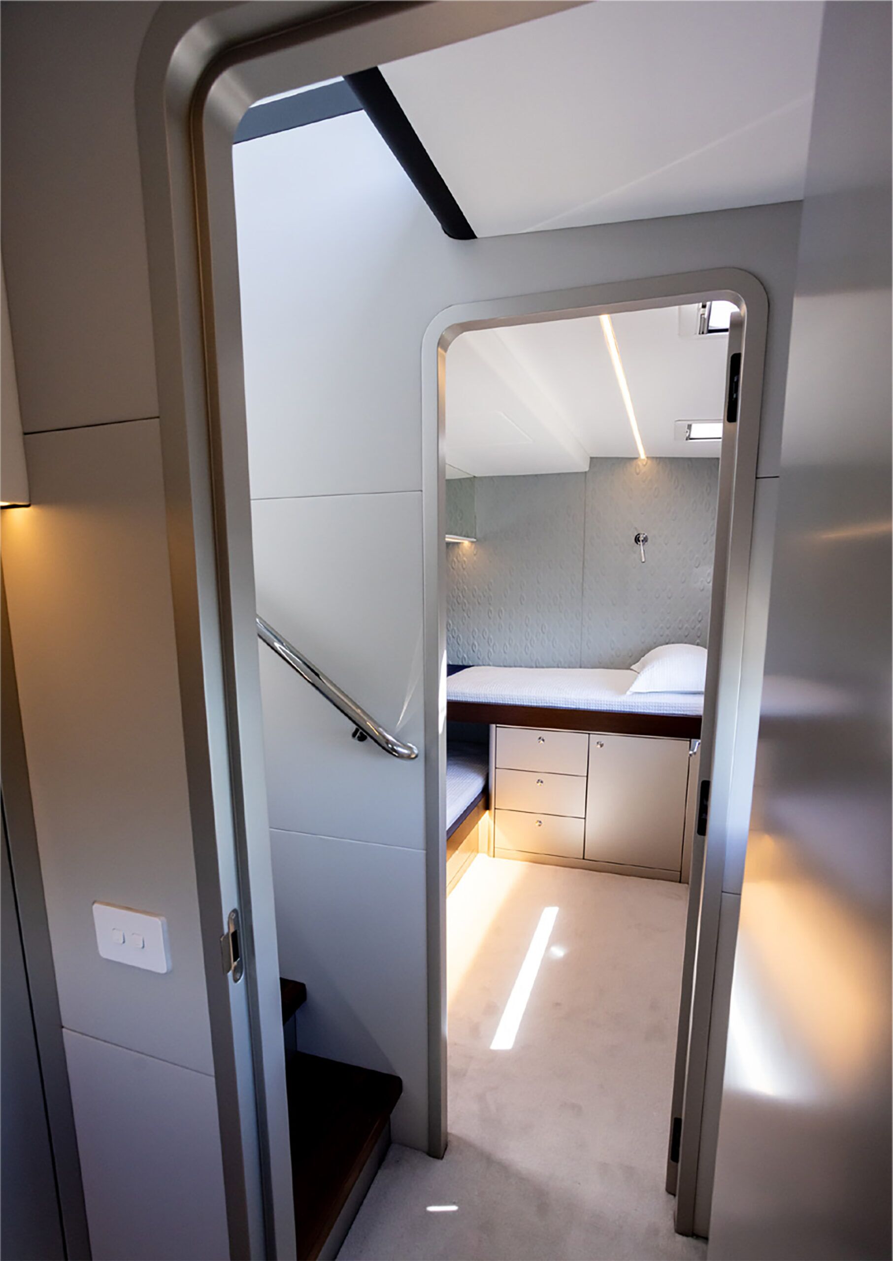 And, Heeley was dreaming of the Whitsundays, Hamilton Island or New Caledonia, all a thousand or more miles from his home base. “The sorts of places that you’d want to go to do any kind of even slightly adventurous cruising, they’re all too far away for a conventional powerboat,” he says. “You can only go in very short steps, lots of refueling, which means you’re very beholden to weather patterns. It would take a week just to get there. And that’s not what I wanted to do.”