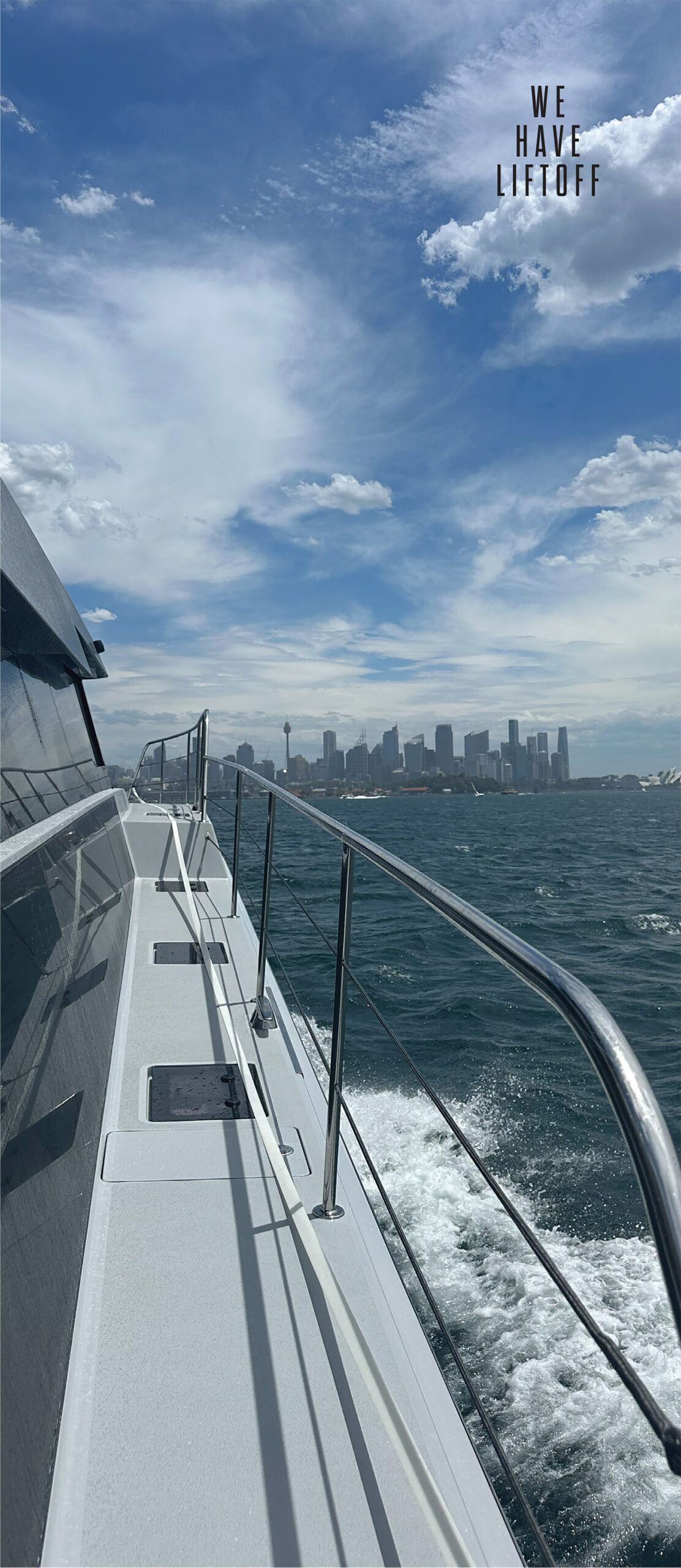 This 60 Spaceship won’t be crossing The Ditch again any time soon, but Heeley is taking advantage of every opportunity to be aboard, whether the adventure is short, long or stationary. The boat is exactly what he imagined, ideal for a swim and a spin around the harbor, but capable of going far and fast for a getaway. “Just like every other boat in Sydney Harbor,” he says, “but slightly better.”