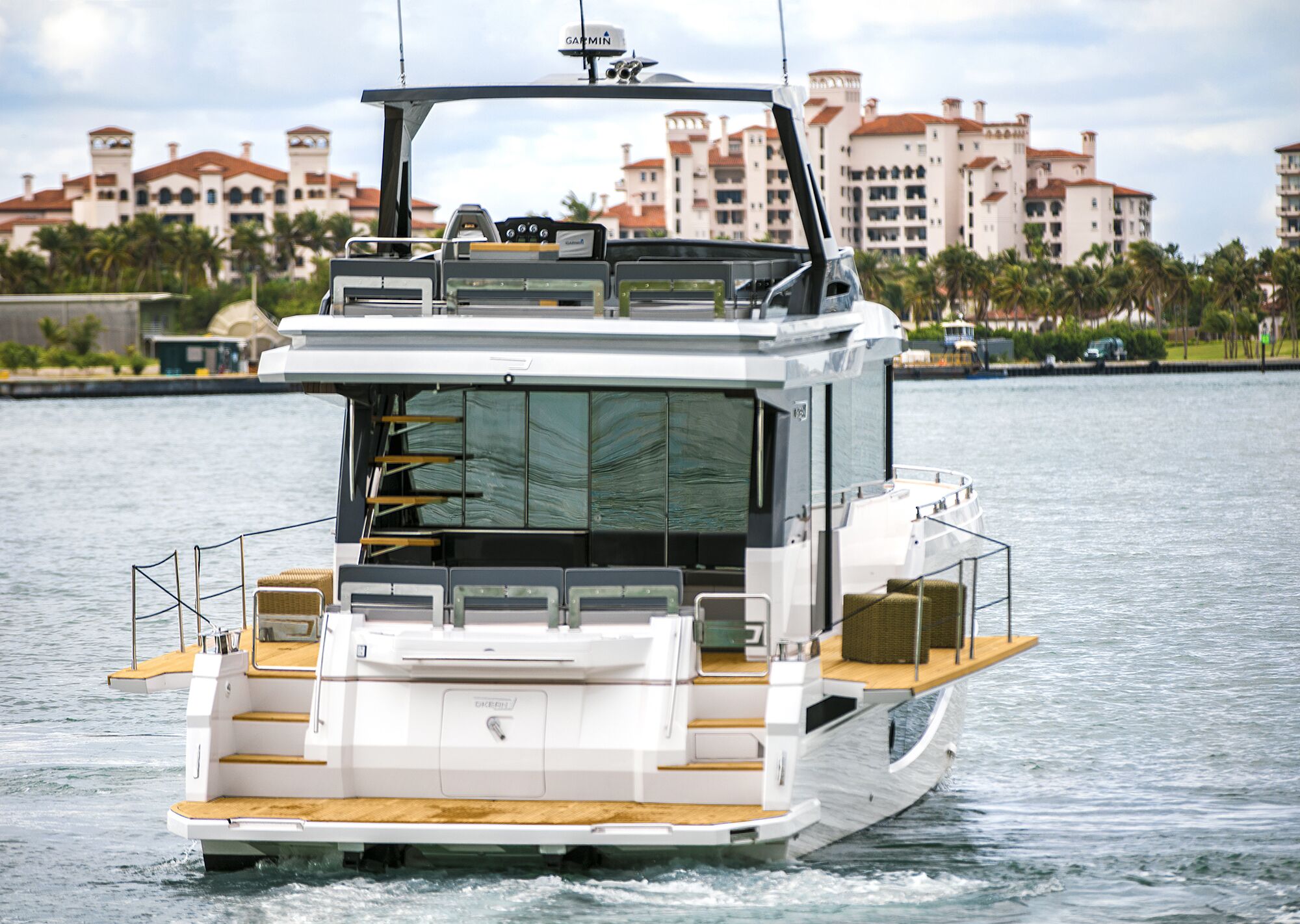 Transparency was not the feature of the boat that I came to write about, but it perhaps overshadowed even the unique pair of balconies that deploy from the freeboard, increasing the afterdeck space by a whopping 100% to a total of 228 square feet.