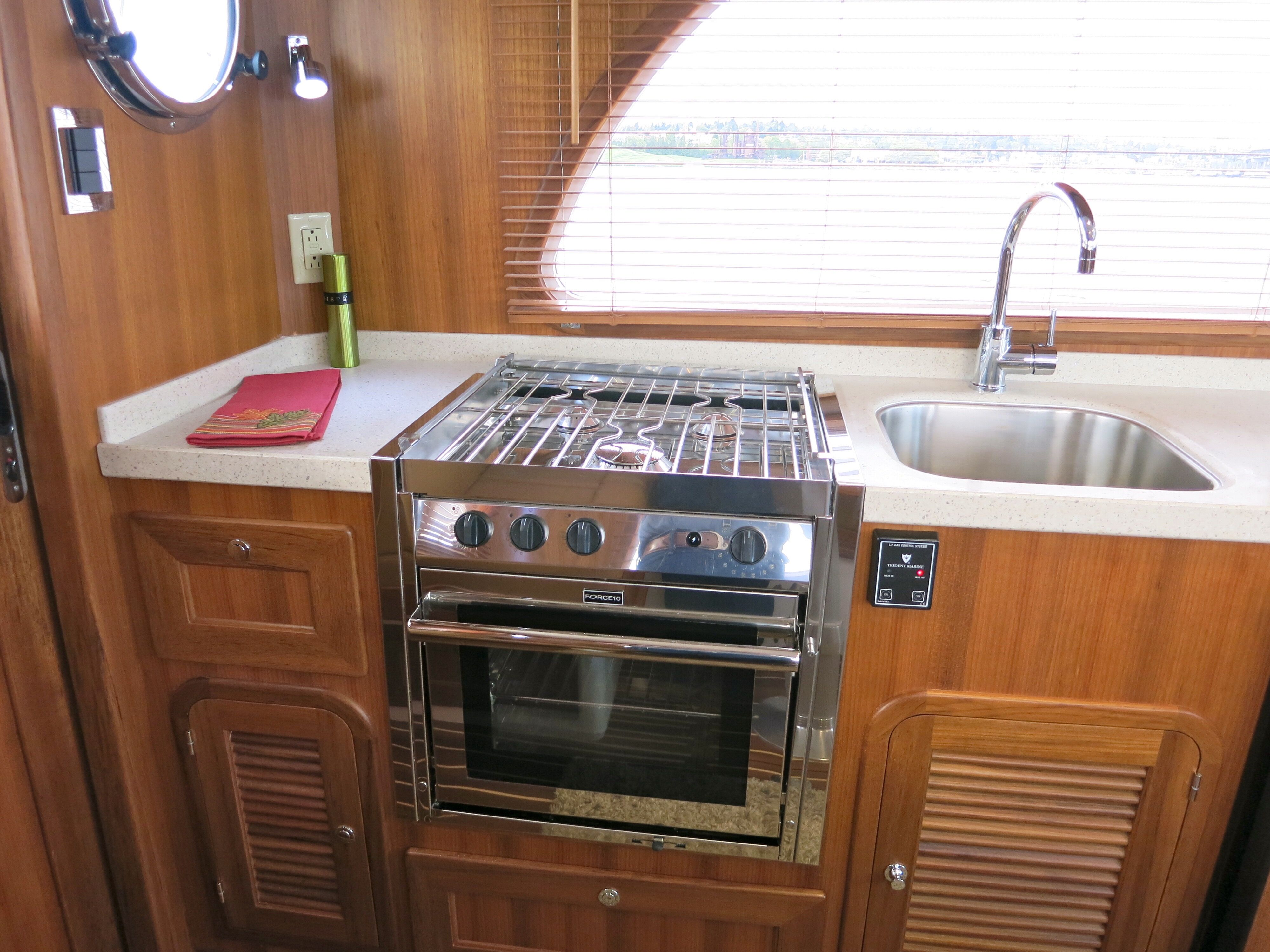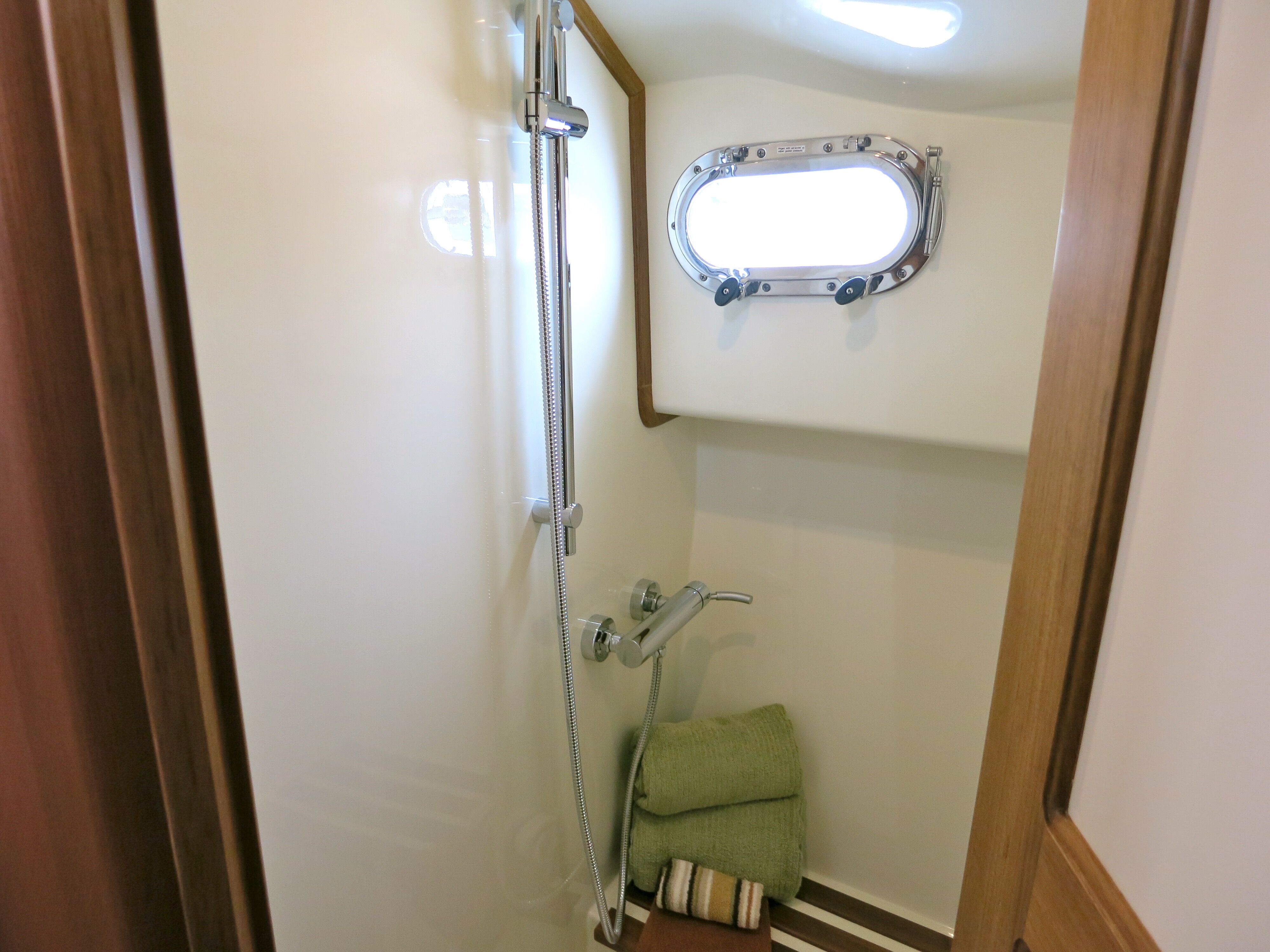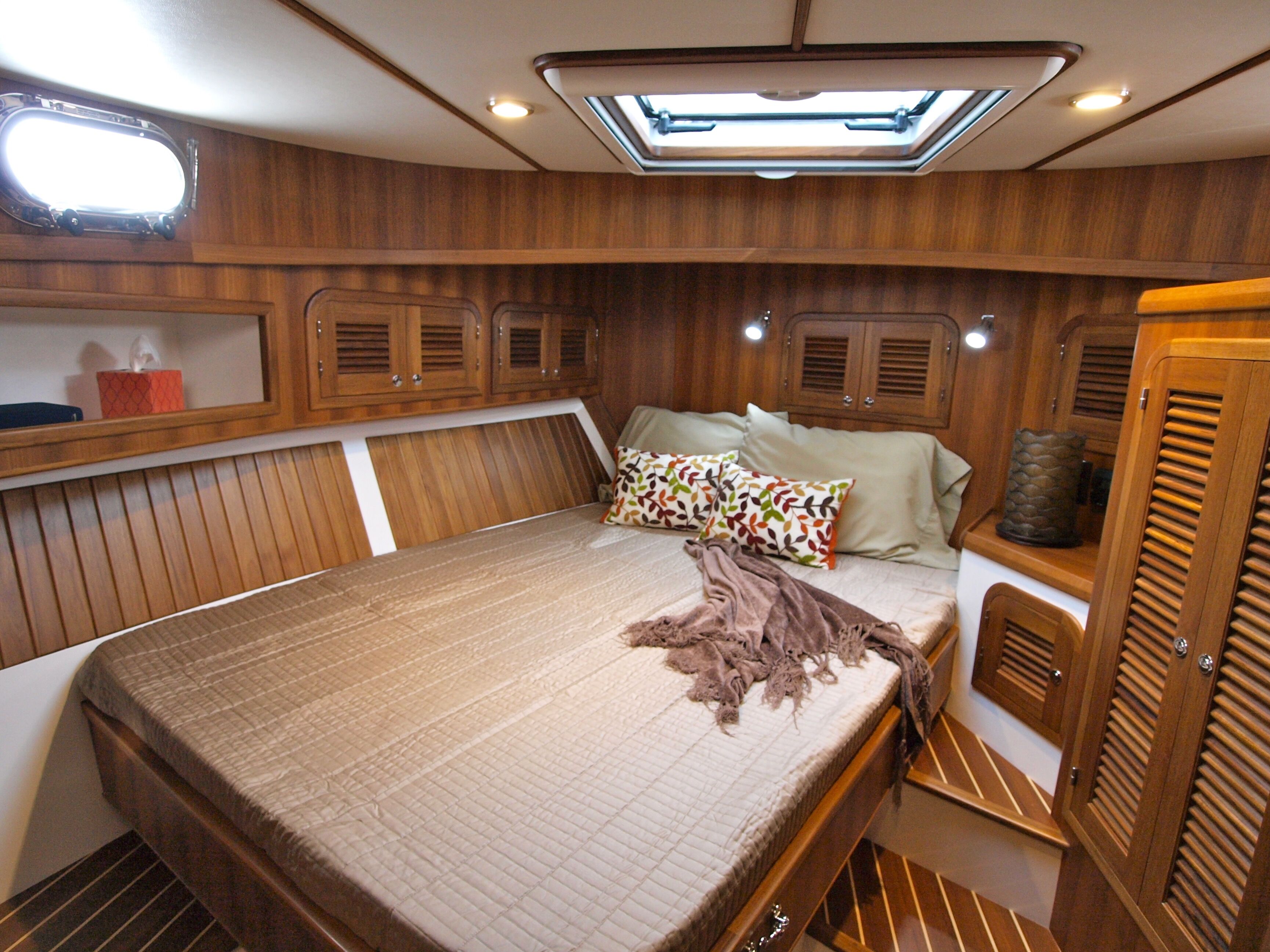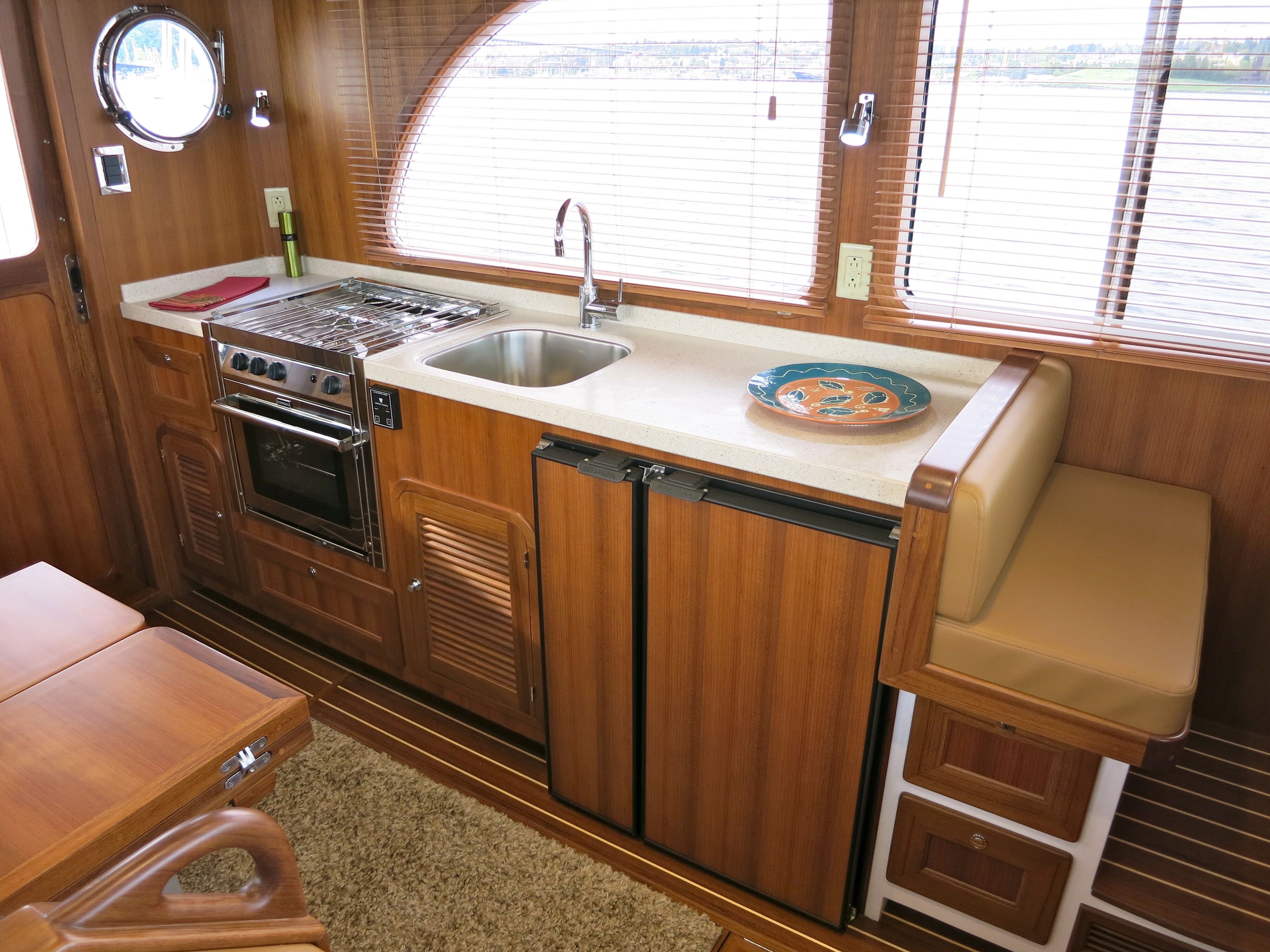 The engine is quiet and sits in a smartly-designed engine space under the sole. Easy access to the impeller, along with a built-in oil pump, make routine maintenance and pre-trip engine checks a smooth operation. Although you may not expect to find an easily accessible engine aboard any 31-foot trawler, space on the 31 Sedan is generous.