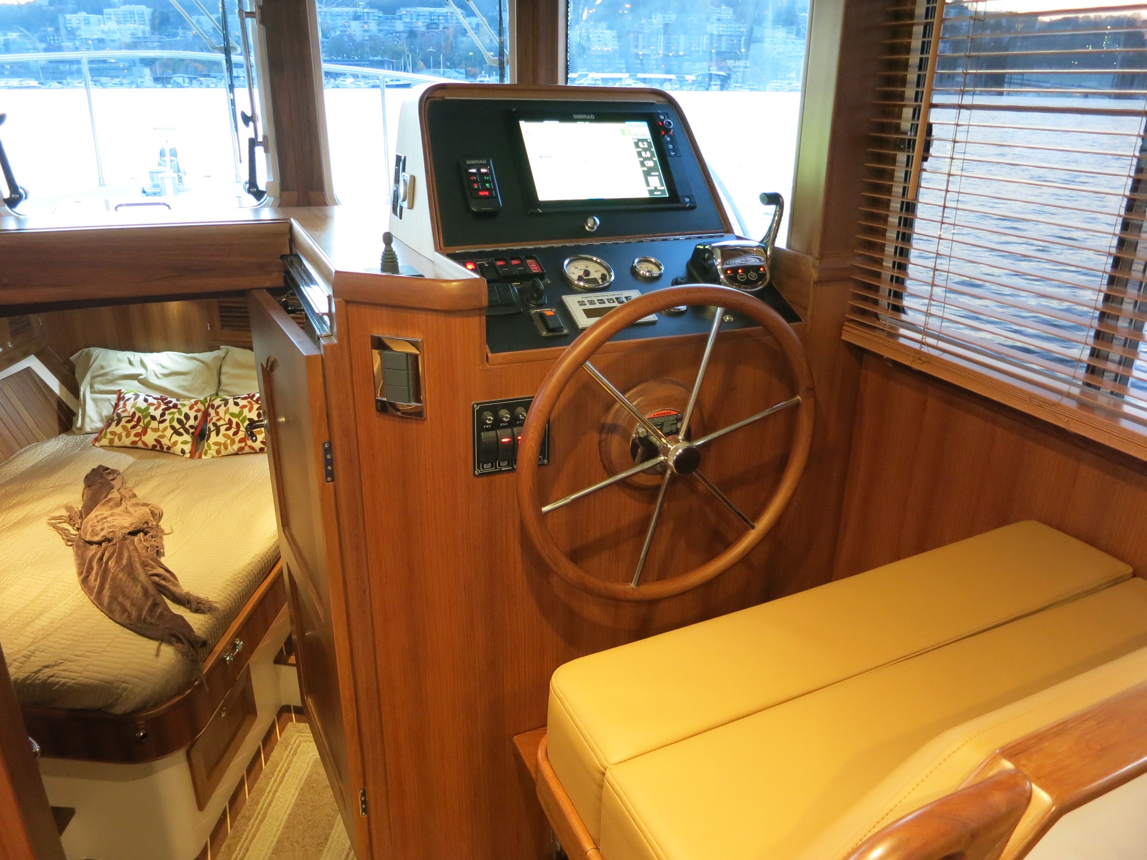 The Camano 31 is no longer, but its tradition in the cruising market lives on, to some degree, with the Helmsman Trawlers 31 Sedan. Built on the same semi-displacement hullform, this little single-stateroom cruiser still bears plenty of resemblance, at least aesthetically, to its predecessor. But inside is where the action is. Helmsman Trawlers (Note: this was corrected from the printed version of the story.), which bought the tooling for the Camano line, has made a concerted effort in the redesign to bring the new 31 up to modern-day standards of premium fit-and-finish, amenities, and performance.