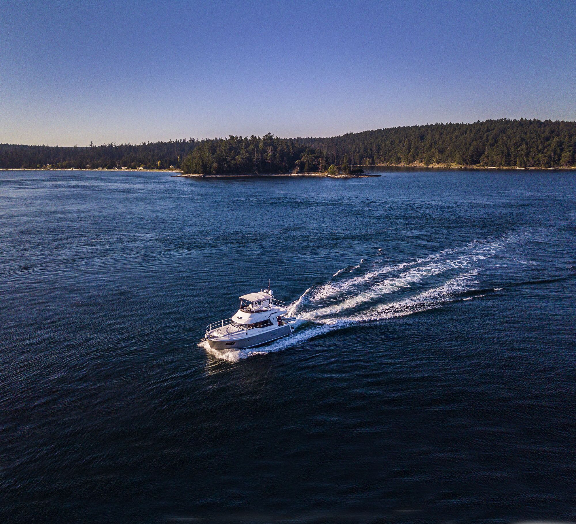The day after our sea trial I posted a quick video of some drone footage we took while we were underway. The only comment made on the video was from someone claiming that the Beneteau Swift Trawler 35 “wasn’t a trawler.” As I mentioned before, this seems to be the main critique of these boats. But if I reflect on what made the 35 stand out to me, it was indeed its “trawlerness.” Though the definition of what a trawler is can be subjective, one of the most commonly agreed-on characteristics of a trawler is that its form follows function. Evolving from workboats to pleasure boats, trawlers have retained this core element. The placement of the boarding door to assist in docking, the fold-down step at the helm, the simple shower door to prevent spray, and the reshaped master bunk are all evolutions of that mantra. And just like workboats of old where captains and crew would edit and change the form and function of the boat to meet their cruising needs, Beneteau continues to study and tweak their most popular design to create what is certain to be another best-selling trawler.