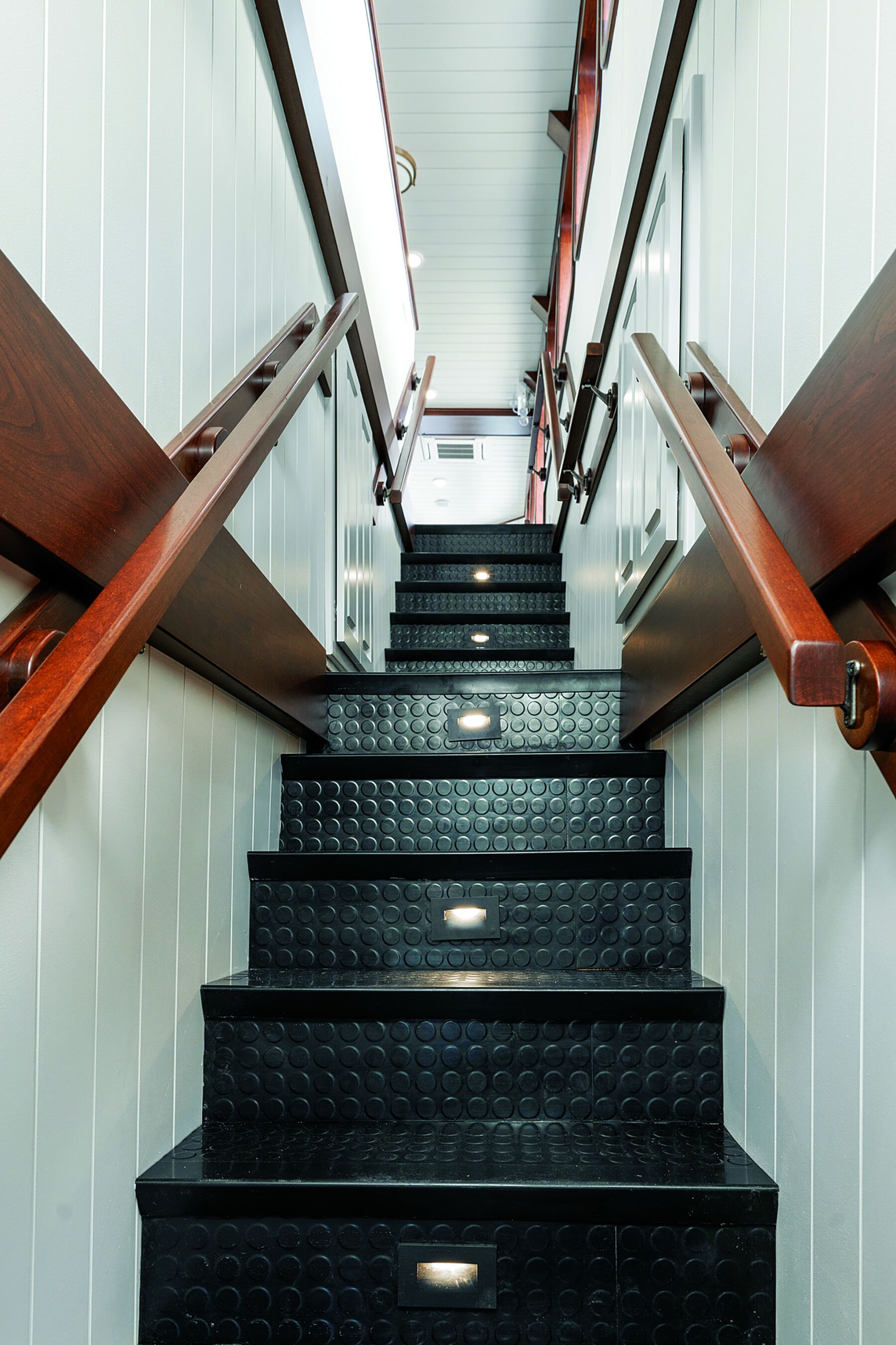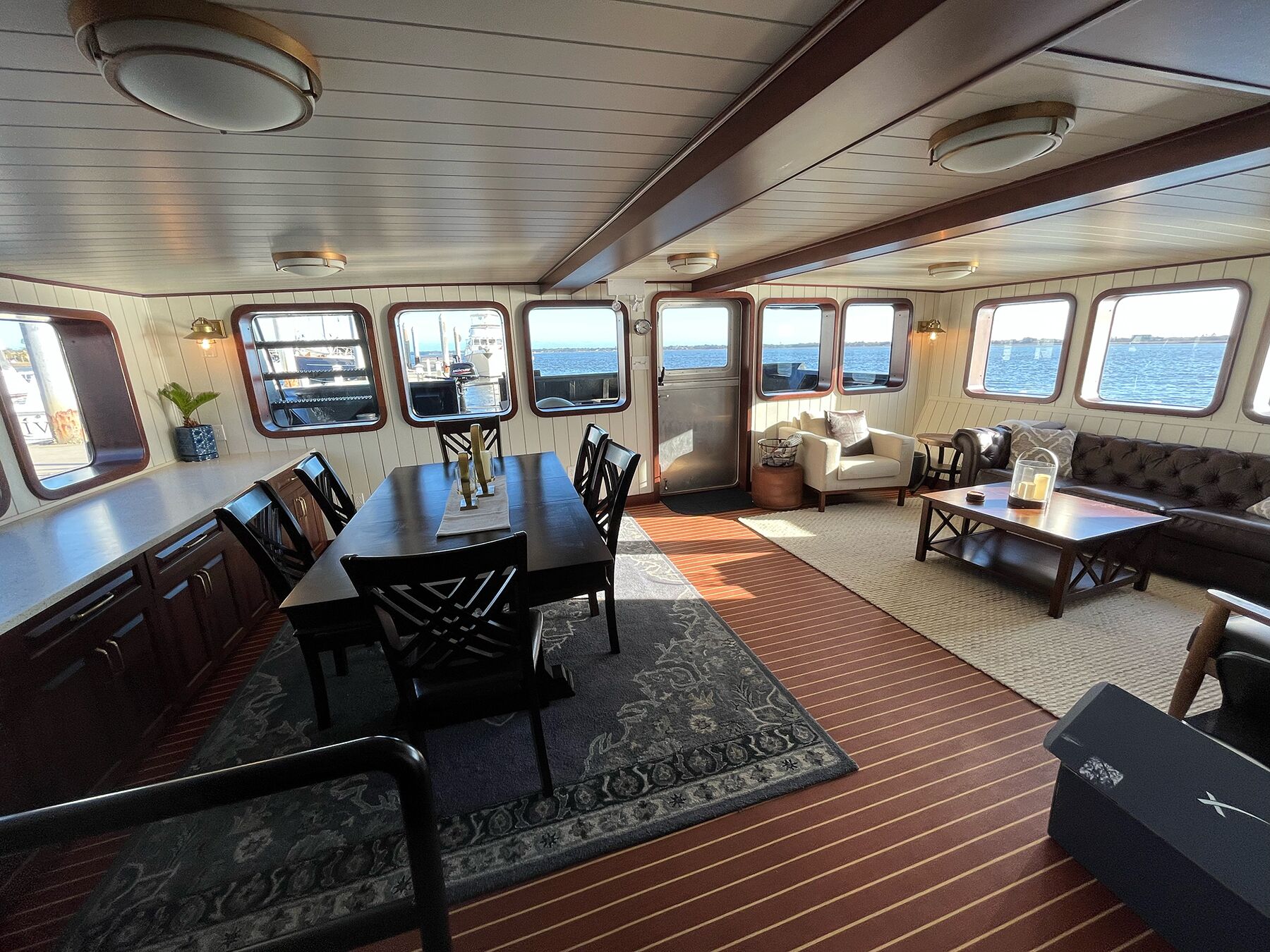 The build was not easy. Nothing, from the water-draining, angled soles to the hull sides, was level. The layout had to work around bulkheads, and every door (most have bronze portal windows) had to be unique.