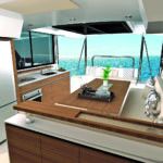 The award-winning designer interior of the Nautitech 47 Power catamaran is based on the popular sailing version, providing a huge chef galley and plenty of lounging space.