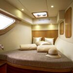 Lagoon refers the SIXTY7 as a “high-end Manhattan apartment on the water.” A glance at the interior photos make a solid case for that description. With 385 square feet devoted to the salon, dining area, bar area and nav station, the main deck is more spacious than your average monohull.