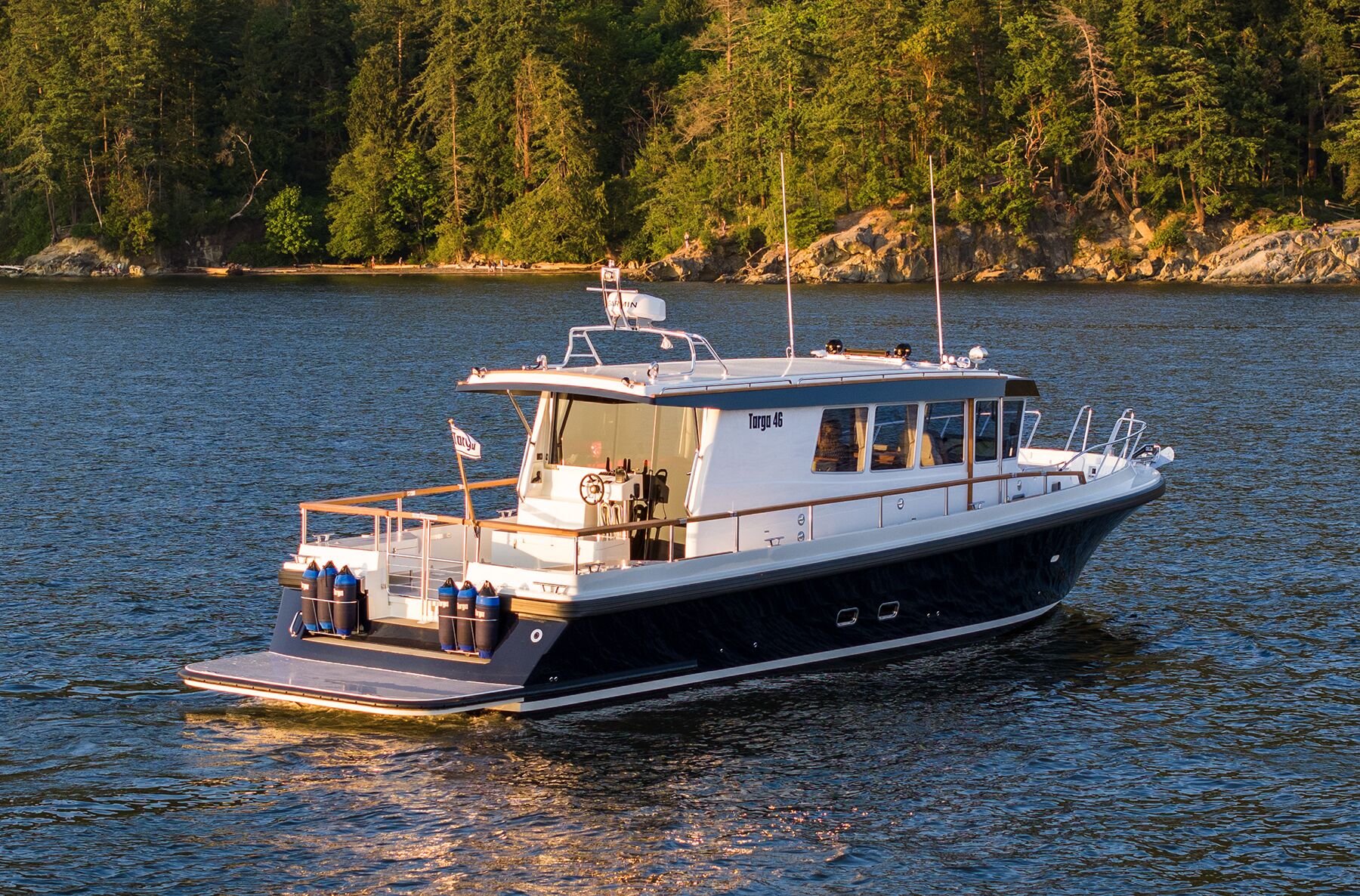 Targa BoatsMy time on the Targa 46 was at our annual Trawlerfest event in Anacortes, Wash. Cardinal Yacht Sales owner Matt Hardin was exhibiting the 46 sedan (a flybridge model is also available) at the show, using her to get back and forth from his home in Bellingham. I met him at the dock as he pulled in on his fast commuter, still on his first coffee of the day.