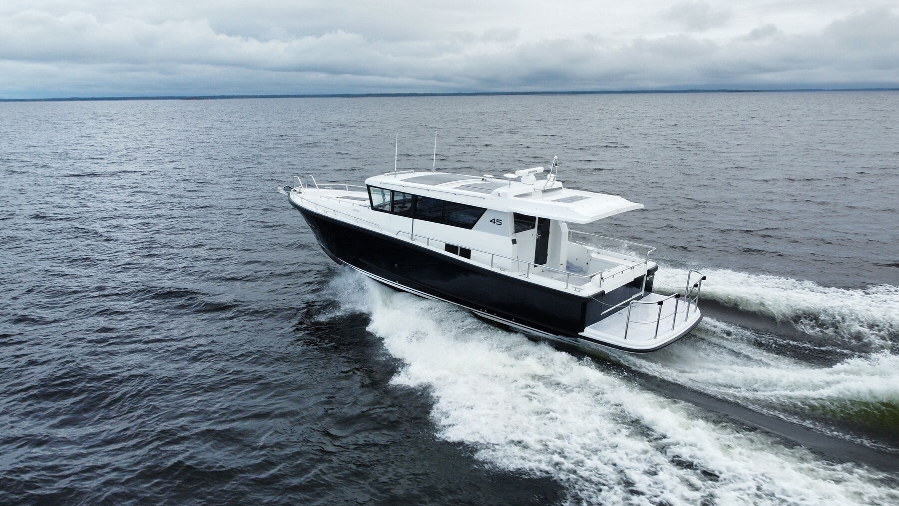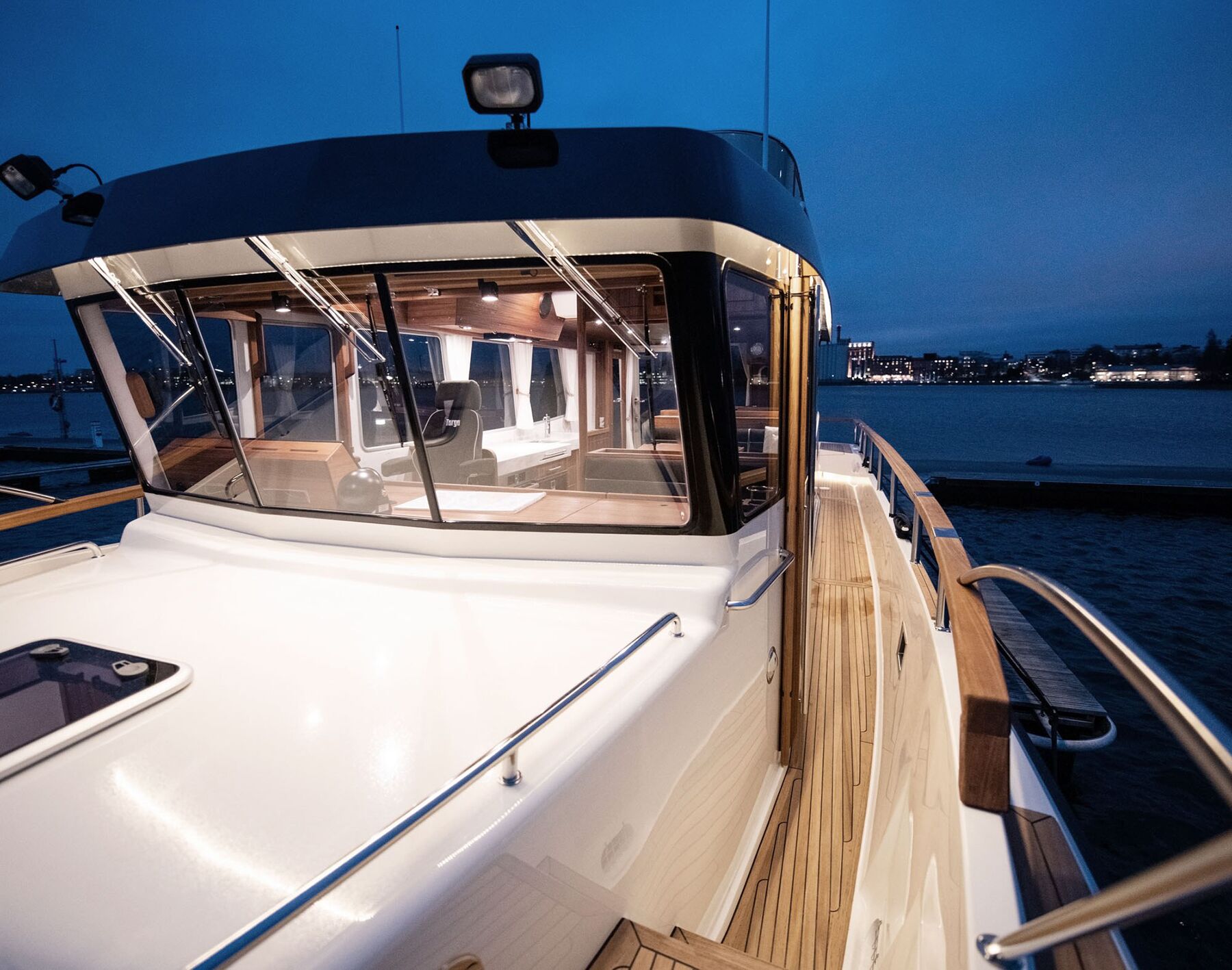The flagship models—the Sargo 45 and Targa 46—make it easy to see why the brands have crossover appeal to a range of boaters while setting a benchmark as sporty sedans. Both have a workboat heritage that can be traced to the rugged, deep-V pilot boats that patrol the Baltic Sea, with walkaround cockpits, well-protected side decks and large, window-filled pilothouses (with forward-facing, reverse-raked panes) for all-season protection from the elements.