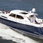 The whole yacht, especially the accommodations, is surprisingly quiet and vibration-free, considering that the living spaces are virtually wrapped around the central engine. Expensive sound proofing and a five blade propeller are the answer. Removing a panel in the inboard galley cabinets gives access to the engine room. This panel allows you to reach all the routine service points, but for anything more ambitious you need to lift the deck in the saloon where the engine space lines up with the sunroof allowing reasonably simple engine removal. A panel in the floor of the master cabin gives access to the shaft and stern gland.