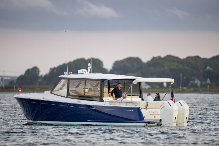 One small criticism is that the wheel needs four turns lock-to-lock, which can seem like a long gap when maneuvering in tight marinas. To help aid captains in tight places, though, Elling has equipped the E6 with powerful bow and stern thrusters. You can place this large boat within inches when coming alongside and that is with a single engine.