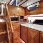 On the water, the Vicem 50 Classic is a well-equipped vessel in its standard configuration, with heavy aftermarket equipment that includes gyro stabilization and a transom-mounted dinghy lift. Capable of top speeds exceeding 25 knots, the 50 Classic is projected to maintain a range of 477 nm at a slower cruising speed of around 8.5 knots, according to the builder. A lighter-equipped vessel option and/or the more powerful optional engine package yield a top speed closer to 28 knots or higher range.