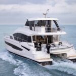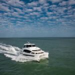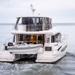Aquila Power Catamarans has introduced its largest family-oriented cruising boat, the Aquila 54. The new model enhances onboard luxuries with full-size refrigeration, abundant counter space, signature outdoor serving and entertaining bar, architectural stairs, water maker, washer and dryer, and many more desirable cruising comforts. Layouts include three, four, and five-cabin options and modern “galley-down” configuration plus skipper’s quarters.