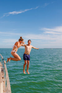 Dream Time has been great for jumping off into the Salish Sea to swim with the whales. I can do that all day long. In winter, we take Dream Time up the Indian Arm inlet and dock by Granite Falls, and paddleboard and kayak up the river. And we love to visit Sidney Spit off Vancouver Island. When the tide is high, the spit disappears and it’s like being anchored in the middle of the Pacific Ocean—magical.