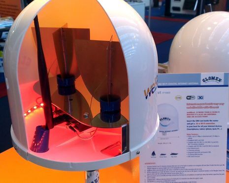 There are two reasons I was a little surprised to read that the Glomex WebBoat 4G won a DAME award this morning at METS. It seems like a minor update to the WebBoat 3G that Kees Verruijt covered here last year, and I thought that the DAME 2014 electronics and software nominees included several strong contenders. On the other hand, I know how hard it is to be a judge, and I thoroughly agree with their statement that WebBoat’s all-in-one approach to marine WiFi and cell communications addresses, an area of rapidly growing interest in the marine industry.” I can’t count how many cruisers I met recently who were struggling with Internet connectivity, even along the U.S. coast. And I’m happy to report that another all-in-one solution, The WiriePro, will soon be available.