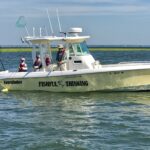As a lifelong boating family we have owned several boats and always have our own boat naming contest. Our son John won our family contest when he submitted “Fishful Thinking” for our 29’ Everglades. The above photo was taken by my wife “Grammy” of “Grandaddy” fluke fishing with grandsons Turner and Jude Ryon in the bay at Beach Haven, NJ, our favorite family activity aboard “Fishful Thinking.”