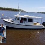 We have Diana IV, a 2005 Paul Gartside-designed 24’ cabin launch, he built her for an Ontario couple who had him store and maintain the boat for their use in the Canadian Pacific Northwest. Paul lived there at the time and when he moved to Nova Scotia the owners had the boat brought east for cruising in the Maritimes. We have owned the boat since 2012 and cruise Downeast each summer as well as use her for family outings nearby. (Not what you all think of as a ‘passage maker’, but she suits our needs.) We’re able to visit the least populated and wildest offshore Maine islands at leisure with our propane heat and stove, water tanks and icebox. “D4” has a head, vee berths and a small diesel with vee-drive, mounted aft in an engine box where all through-hulls, etc. are located. Thus we are able to keep the boat in the water year-round here, heated and ready for winter days when the sun shines and all is calm.