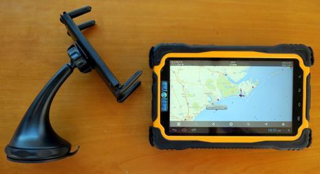 Meanwhile, I believe that the iPad is a tad brighter than the two Android screens and that the two waterproof cases both have anti-glare screen protectors, but frankly none of these tablets is easy to use in bright sun. The Naviotab case — which is not easily removable, if at all — seems a lot more rugged and heavily bumpered than the Lifeproof frē case (which I like for its slimness but which is obviously falling apart after a long, hard test life). In fact, the Naviotab seems a bit heavy for their suction mount option, though the mount is stronger than it looks (and RAM offers an alternative).