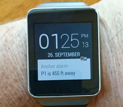 I don’t know if there’s something about Android that makes it harder to enable a WiFi data stream or it’s just that many more developers are working on iOS marine apps. The Android AIS app Boat Beacon can display a boat’s own AIS data (as well as Internet AIS), but the same developer’s SeaNav charting app is iOS only. So I think — corrections welcome — that Memory-Map is the first full nav app to integrate boat data and one immediate beneficiary is the Android-based Argonaut A615 Smart Monitor, which already shipped with Memory-Map, but now can be even more of a complete nav solution. Richard Stephens also sent along this image of a Sony Android SmartWatch displaying a notification generated by Memory-Map Pro running on a Bluetooth connected tablet. AIS targets can also trigger tablet and smart watch notifications, and the parameters can be set differently for Class A and B vessels, though I should note that in the iPad world SeaNav’s interface with the Pebble watch is at least as impressive.