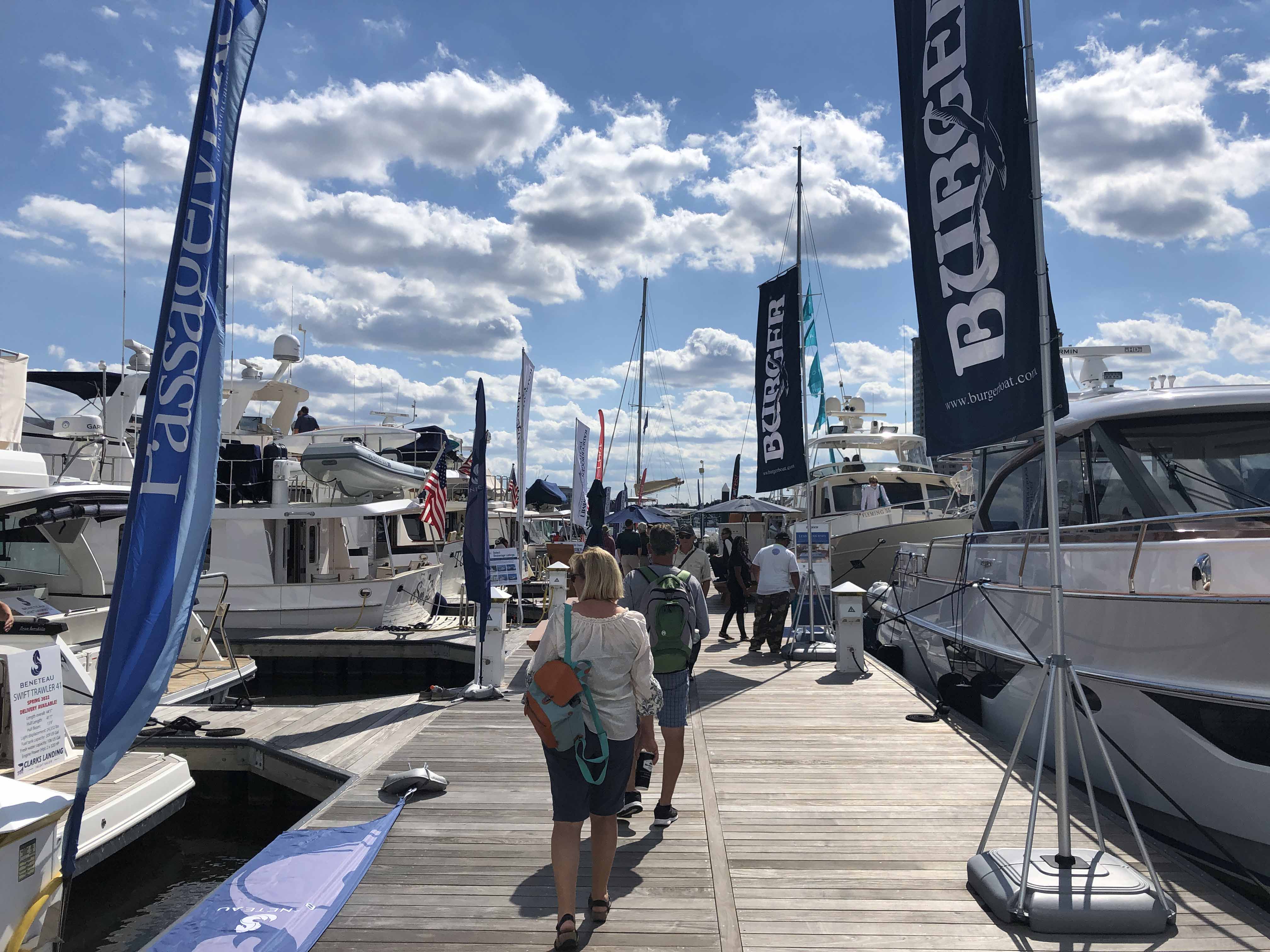 The fall weather couldn’t have been more perfect for the hundreds of show-goers who perused boats along the docks at Harbor East Marina in Baltimore’s Inner Harbor. Boats on display represented a wide variety of trawlers and coastal cruisers from 23 to 55 feet in length.