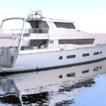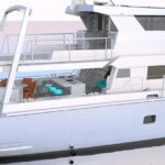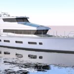 Powered by twin 250-hp Scania diesels, the boat’s reported top speed is 13 knots. At 9 knots, the boat is capable of 5,000 nautical miles, according to the builder. It will accommodate six guests and two crew members in four staterooms. Delivery is expected in late 2021. A smaller 20m model (65 feet) is also in the works.