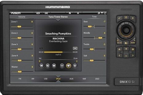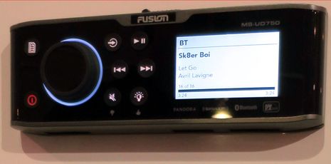 Check out this Humminbird ONIX10 screen for a reminder of how good Fusion-Link audio control can be on a color touchscreen display. I’ve written about the excellent Garmin implementation and will have high expectations when I try the Simrad version next spring. This is what makes black box stereo possible and even attractive, though many boaters will also want a remote control for those times when they don’t want to run their MFD system and/or because no MFD or wireless interface can beat a good old dedicated volume knob. (Note that I’ve also tried Raymarine Fusion-Link, but it won’t work with the BB300 because it’s done over Ethernet, and that’s the same story for the Furuno TZT series.)